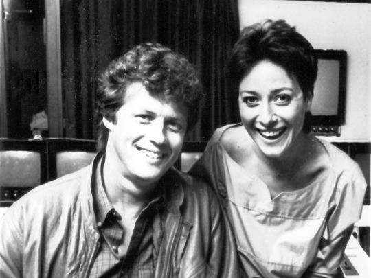 Director Roger Donaldson with actor Anna Jemison (now Anna Maria Monticelli) in Auckland, at the 1982 Auckland premiere of Smash Palace.